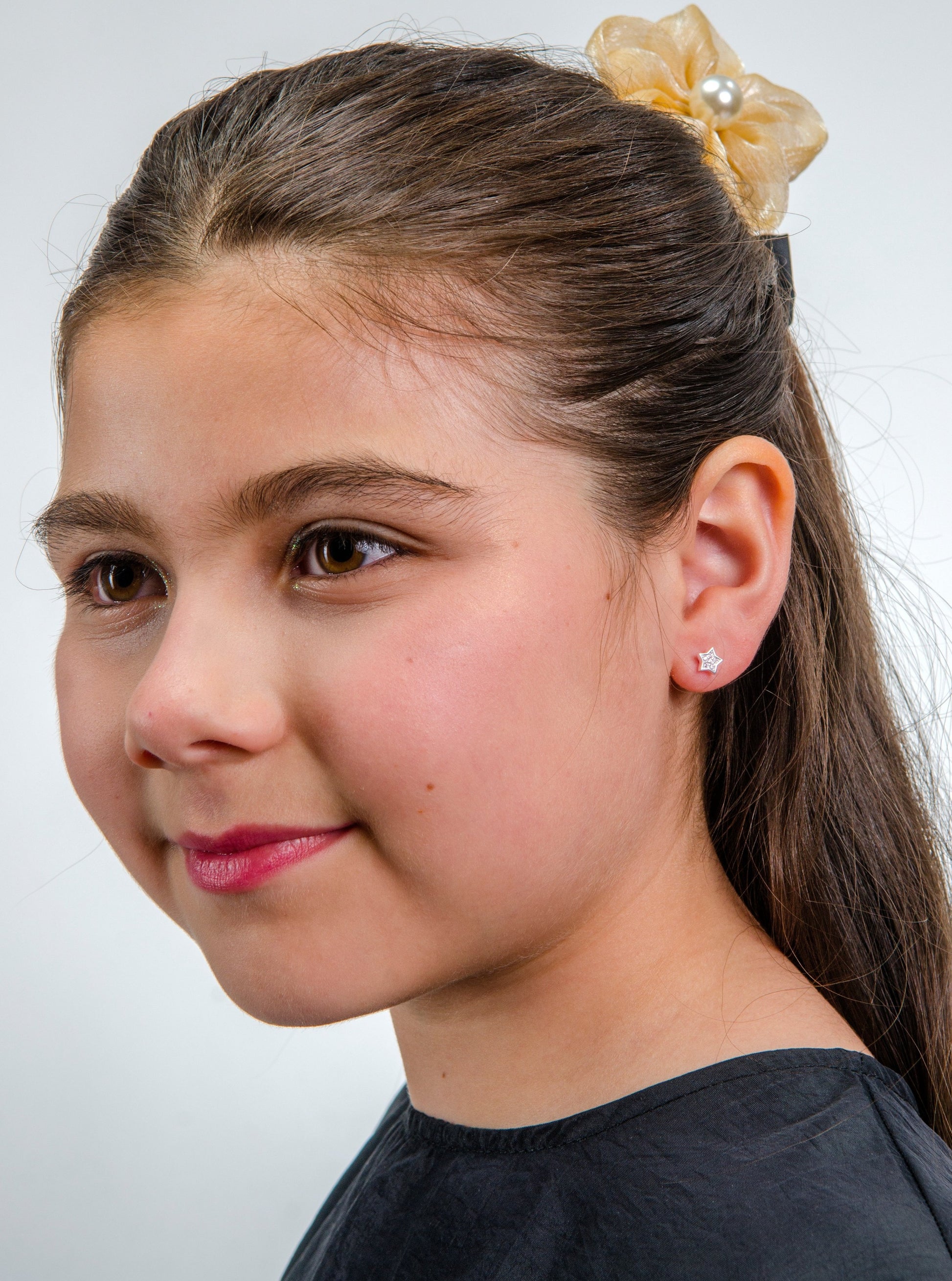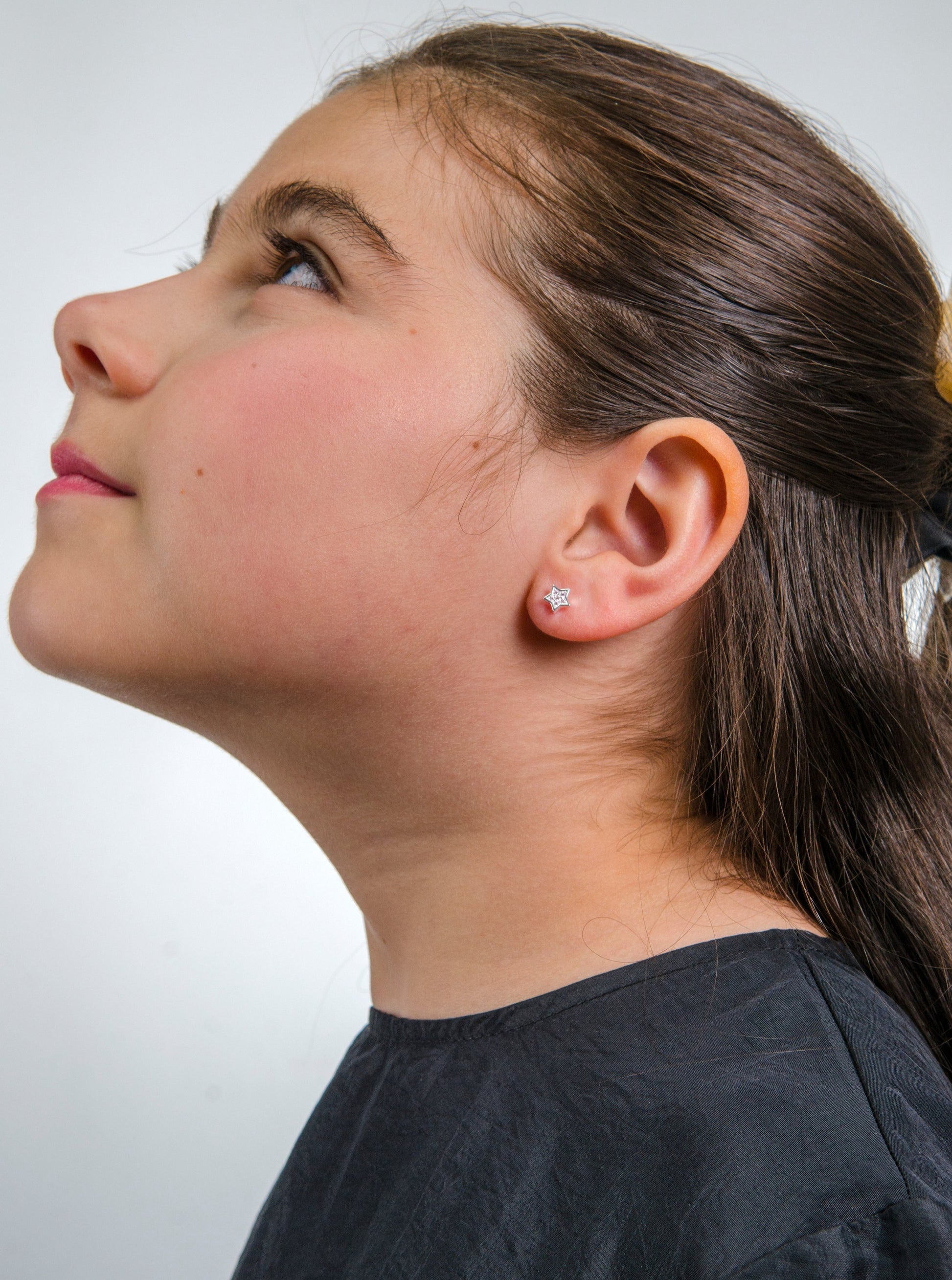 Nuestros favoritos, delicados aritos de estrella con pequeños detalles en circón rosa.