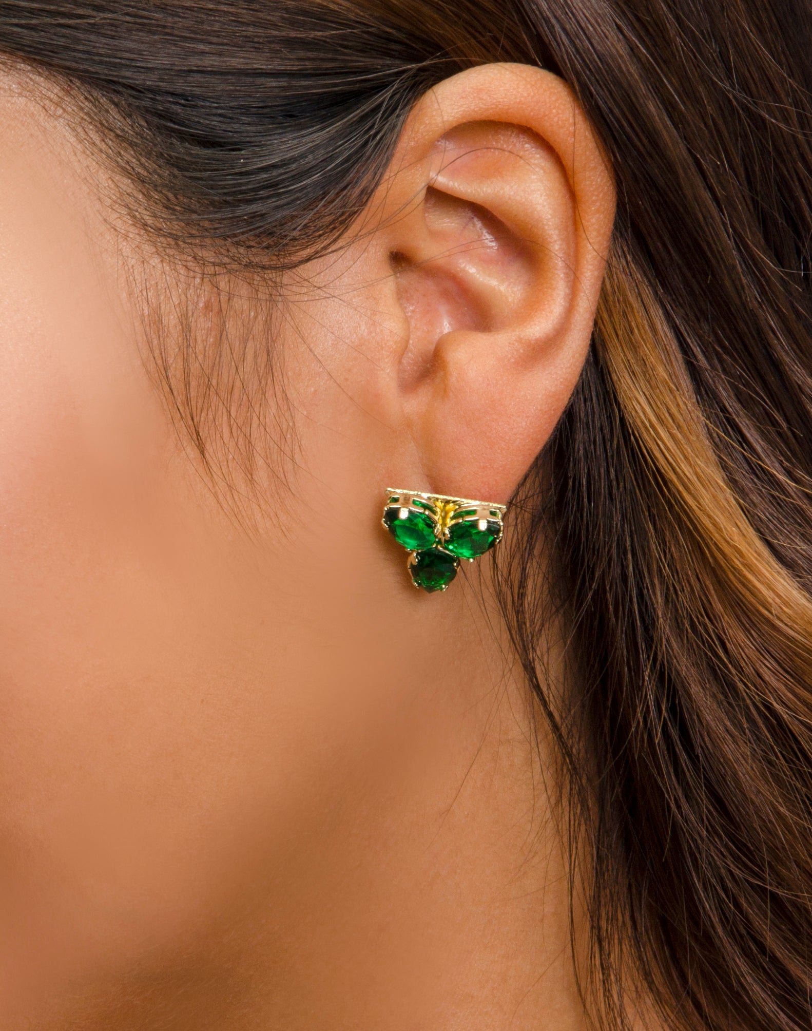 Aro trilogía de gotas en circonita verde, con este aro no pasarás desapercibida.