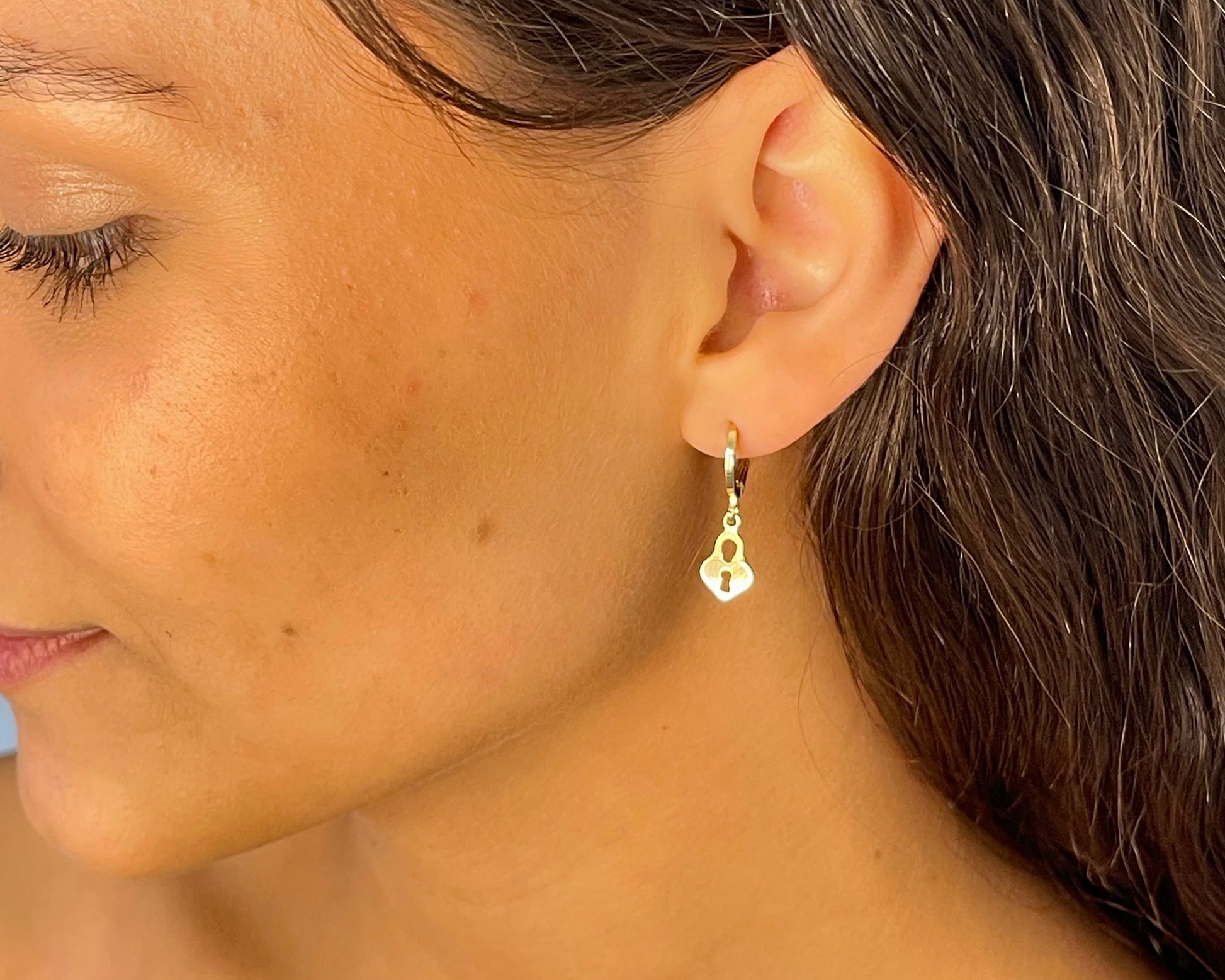 Argolla con colgante de candado que puedes combinar con todo tus outfits, ideal para usarlas en tu día a día.